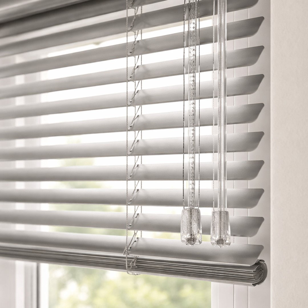 Persienner med handtag eller motor blir alltid barnsäkra, då det aldrig förekommer några lösa linor.